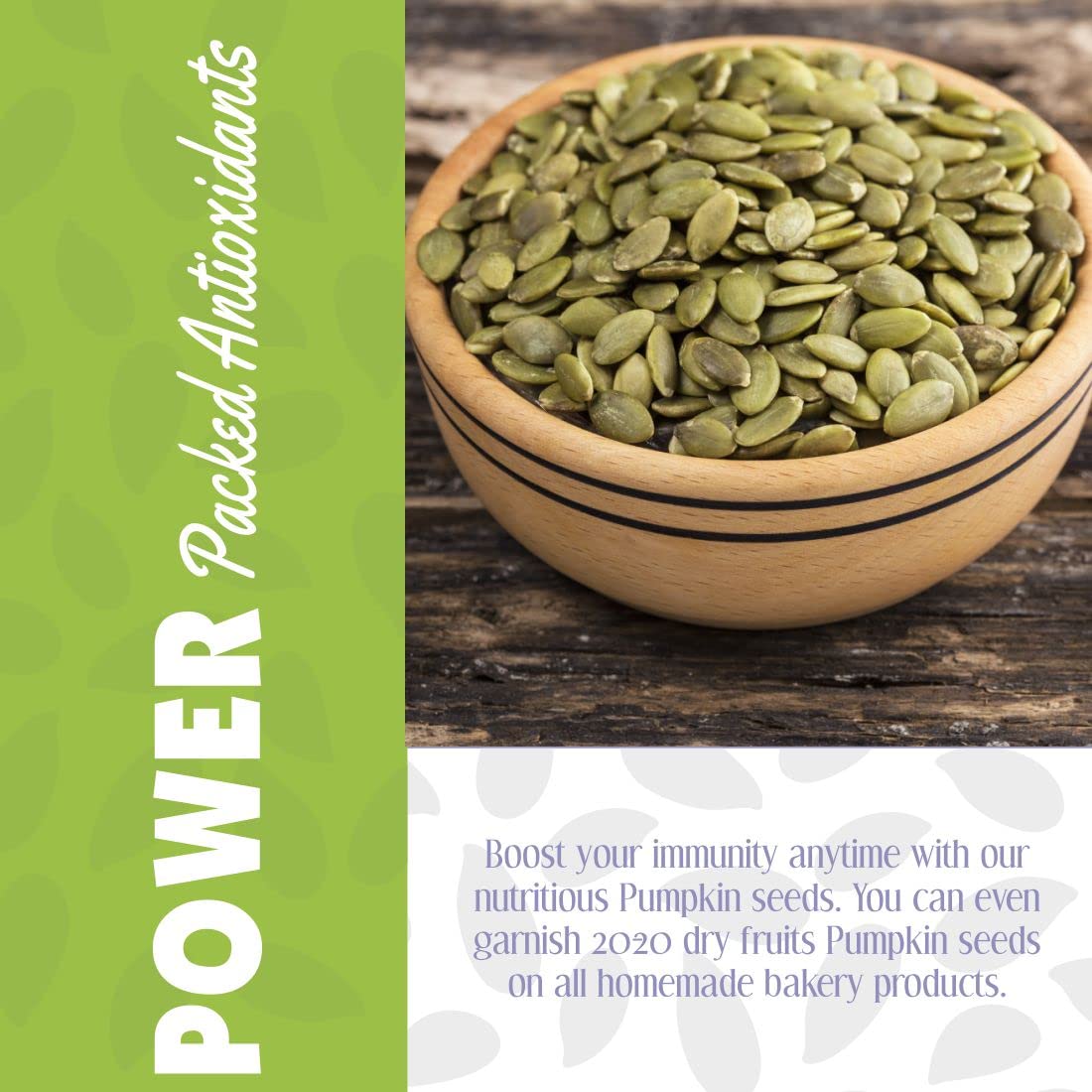 RICH IN ANTIOXIDANTS: Pumpkin seeds are a natural source of iron, zinc, magnesium & antioxidants. 20-20 Dry fruits Pumpkin seeds are packed with a truckload of essential minerals and vitamins like potassium, polyunsaturated fatty acid & folate.