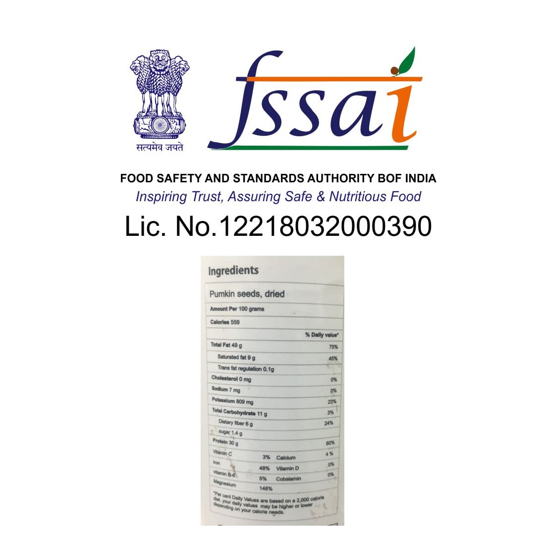 HAND-PICKED PREMIUM QUALITY PUMPKIN SEEDS: Including 45g of carbohydrates, 18 g of protein, and 63% of Calcium. Contains No Trans fat | No Cholesterol
