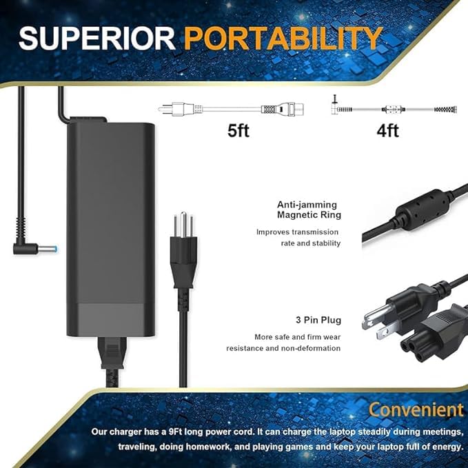 200W AC Replacement Charger Fit for H P Omen Pavilion 15 16 17 Victus 15 16 Zbook 15 17 ZBook Fury Create Studio Envy 15 2020 TPN-DA10 Gaming Laptop Power Adapter Supply