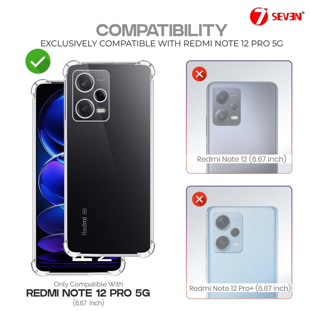7SEVEN® Back Cover for MI Redmi Note 12 Pro 5G Transparent Mobile Back Case Shock Proof Design Camera Edges Protection Crystal Clear Phone Case Silicon Soft TPU and Flexible Bumper Phone Cover