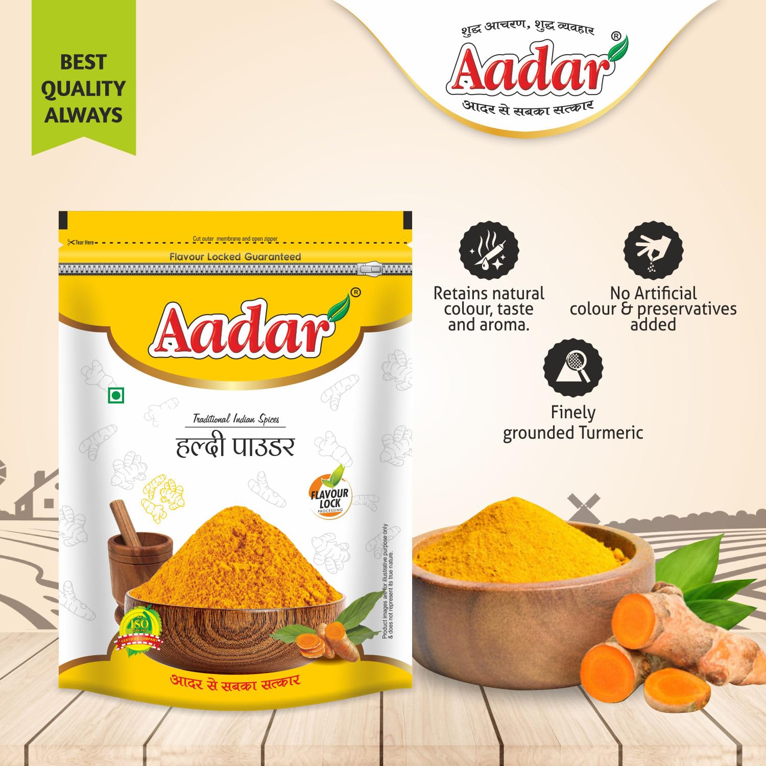 Aadar Spices contains no added preservatives. 100% pure and organically harvested Haldi powder.