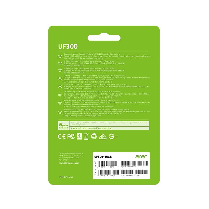 Acer 16GB UF300 USB 3.2 Gen 1 Flash Drive-Metal