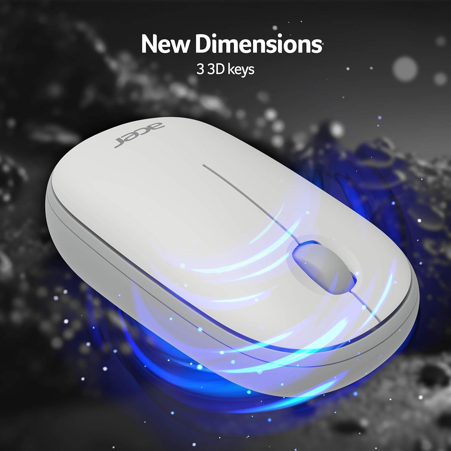 Acer Bubble Wireless Mouse AMR100 | 2.4GHz Silent Click | 1600 DPI | Ergonomic | AA Battery | Win8/10/11 | Compact Lightweight Design | Color: White/Grey