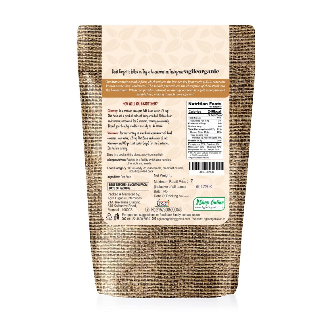 Agile Organic® Oat Bran 1.2kg