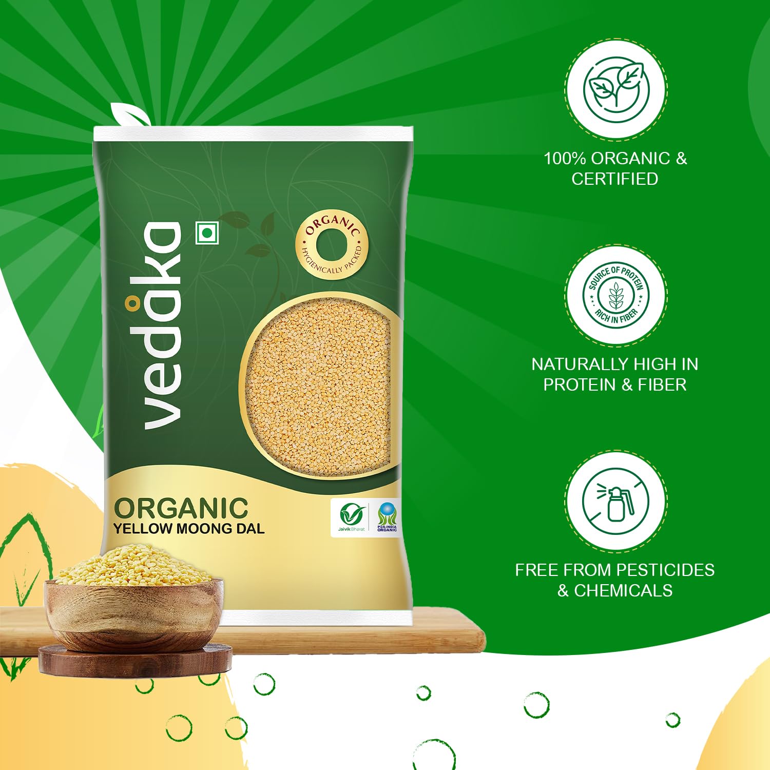 Amazon Brand – Vedaka Organic Yellow Moong Dal | 1 Kg |Naturally Rich in Protein||Naturally Cholesterol Free