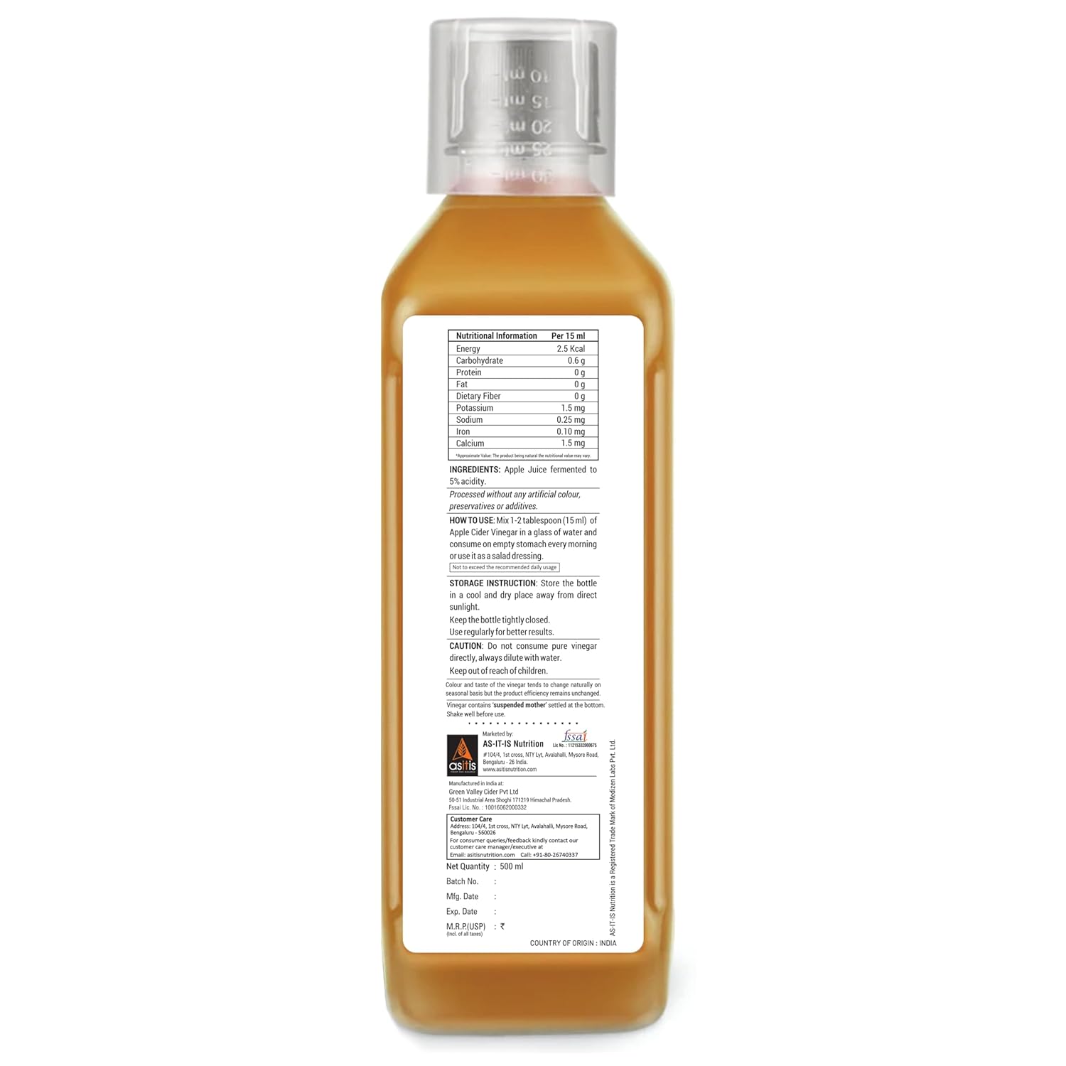 AS-IT-IS Nutrition Raw Apple Cider Vinegar with Mother 500ml