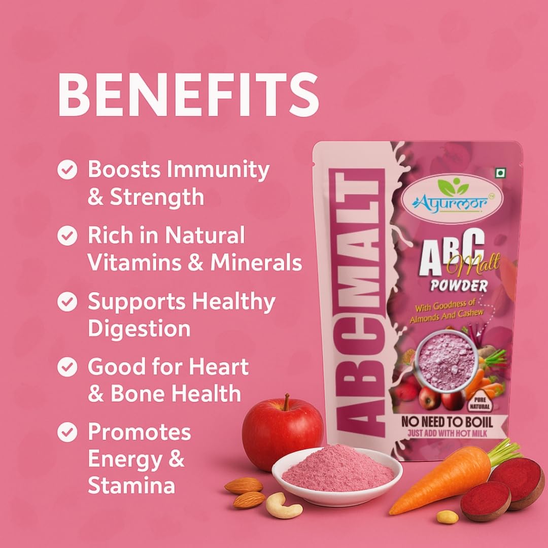 ✅ Introducing Ayurmor ABC Malt Powder, crafted with care using natural ingredients such as Apple, Beetroot, Carrot, and Pure Jaggery Powder. Our product is free from White sugar, chemicals, and preservatives, ensuring a 100% natural and vegetarian blend. Experience the pure goodness without any additives!
