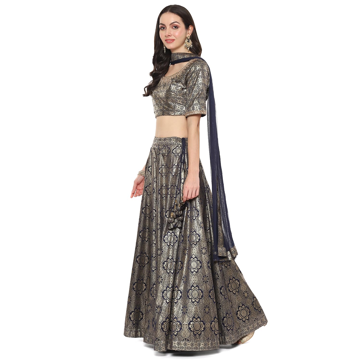Generic Name : Biba Women Navy Blue Polyester Lehenga Set(SKDASSORTED8935_S_NVYBLU)