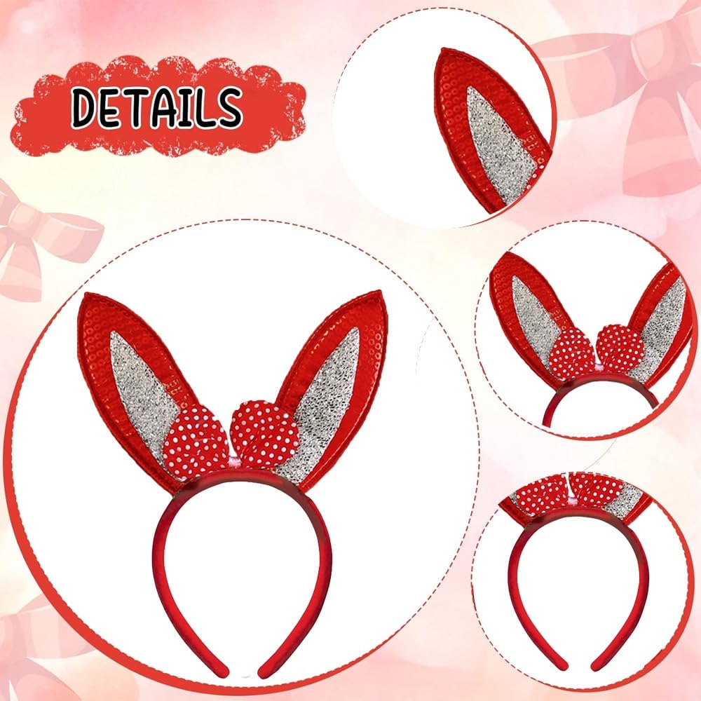 Add a playful touch to your look with these adorable bunny ear headbands! This pack offeatures striking red bands adorned with sparkly silver glitter ears and charming polka dot bows. Measuring approximately 21 cm, these headbands are perfect for parties, festivals, or everyday fun wear. The ears stand tall and proud, while the glittery finish catches light beautifully for an eye-catching effect. The comfortable headband design ensures a secure fit for hours of wear. These versatile accessories can transform any outfit into something special, making them ideal for costume parties, fancy dress events, or simply adding a whimsical touch to your daily style. The durable construction and attention to detail make these headbands both practical and fashionable. Perfect for gifting or sharing with friends, this twin pack offers double the fun!