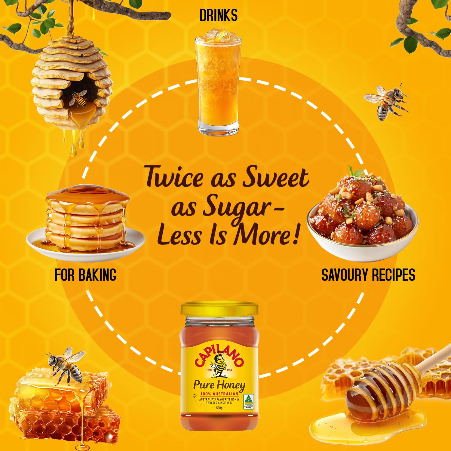 Capilano Australian Honey- 500gms | 100% Pure & Natural | Eucalypt & Ground Flora Blend | Sweet, Smooth & Balanced | Perfect for Tea, Toast & Recipes