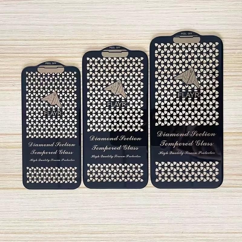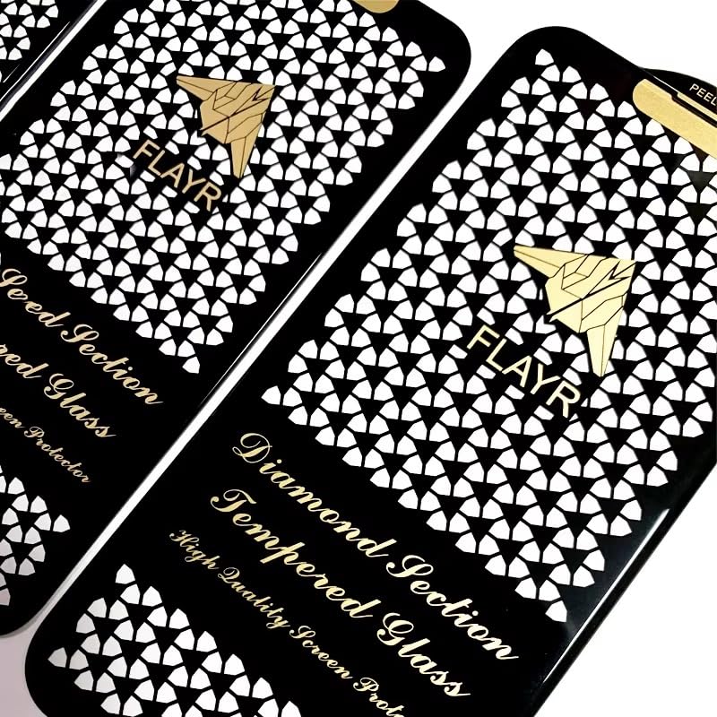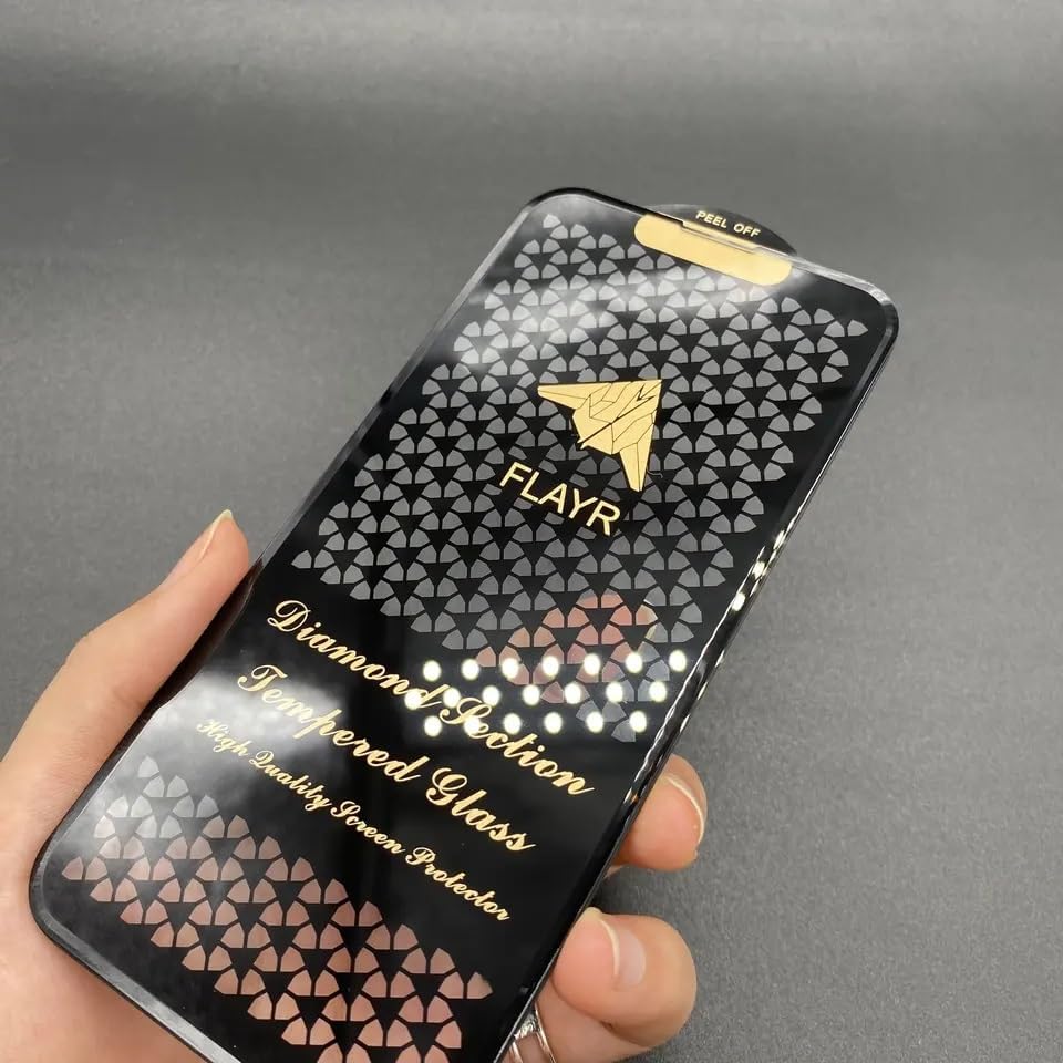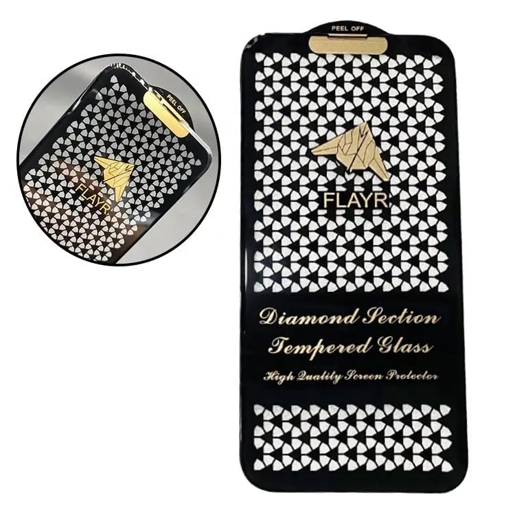 Introducing flayr Diamond Series Tempered Glass Screen Protector, a premium shield for your iPhone that combines sophistication with superior protection. The elegant diamond pattern design adds a touch of luxury while maintaining perfect clarity. This edge-to-edge screen protector features high-quality tempered glass construction for maximum durability against scratches and impacts. The precision-engineered protector comes with an easy self-installation kit, ensuring a bubble-free application. The innovative peel-off design makes installation straightforward, while the perfect fit ensures complete coverage of your device’s screen. The ultra-thin glass maintains your phone’s original touch sensitivity while providing crystal-clear visibility. The specially treated surface resists fingerprints and smudges, keeping your screen looking pristine. Whether you’re a professional or casual user, this screen protector offers the perfect balance of style and protection for your valuable iPhone investment.