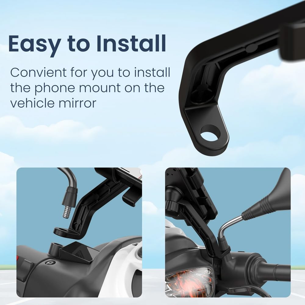 Rearview Mirror Mount Design: Attaches securely to the mirror rod of most motorcycles and scooters.