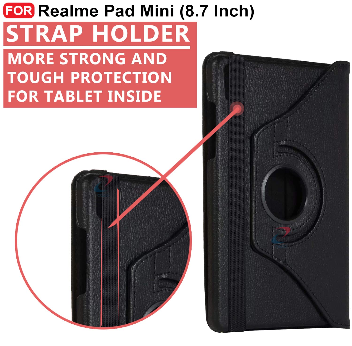 CEDO Realme Pad Mini (8.7 inch) Flip Cover | Leather Finish | 360 Degree Rotate Back Cover | Shockproof Back Cover Case for Realme Pad Mini (8.7 inch) (Black)