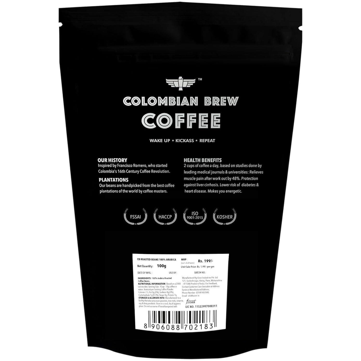 This is an elegant pack of 150g – Colombian Brew 100% Arabica Roasted Beans. Dark Roast. Colombian Brew is inspired by Francisco Romero, a priest in mid-16th century Colombia that started its coffee revolution. Colombian Brew Coffee is sourced from best Arabica Bean Plantations in the world.