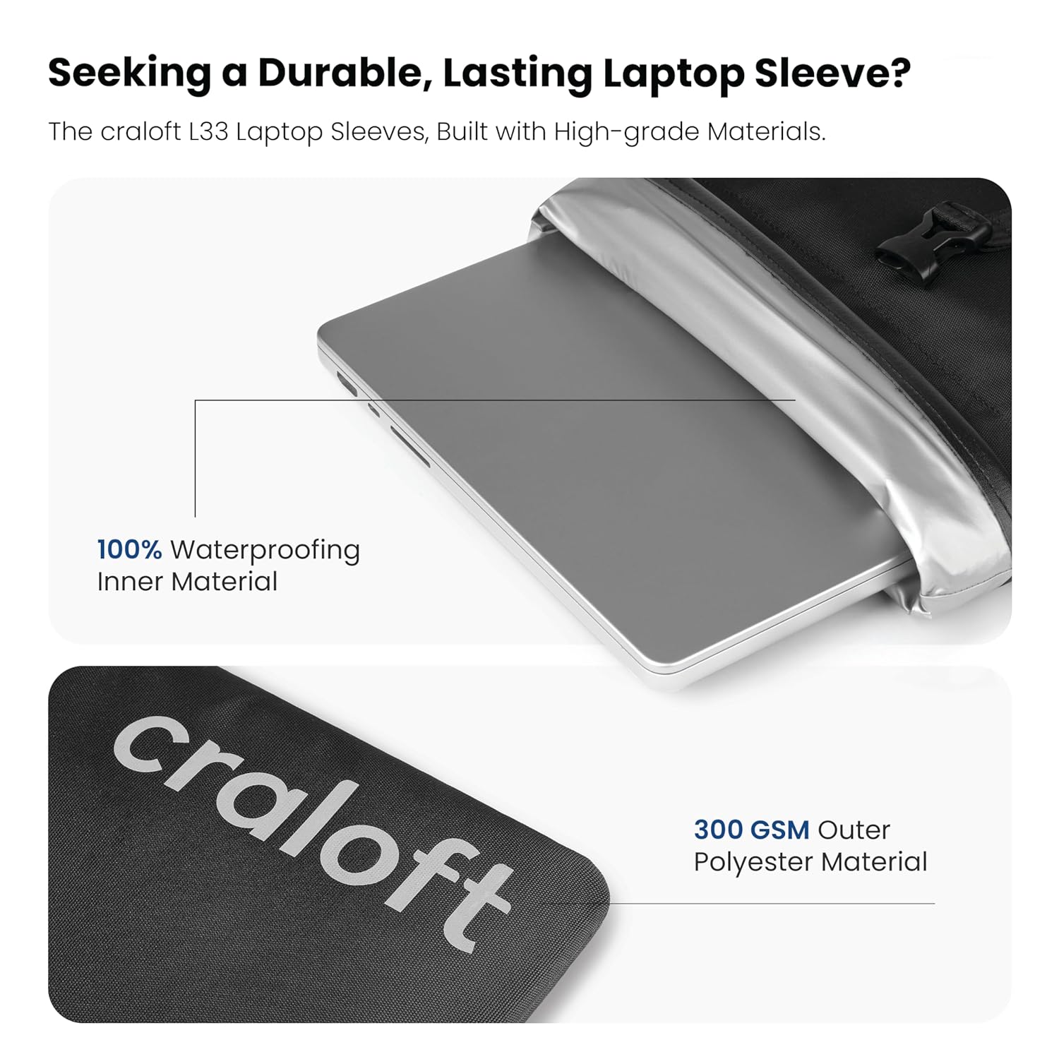 8MM SHOCK-RESISTANT PADDING – Built with a protective 8mm sponge layer, this laptop sleeve 15 inch cushions your device from drops and bumps. A reliable craloft laptop sleeve 15.6 inch for professionals who need extra peace of mind while traveling.