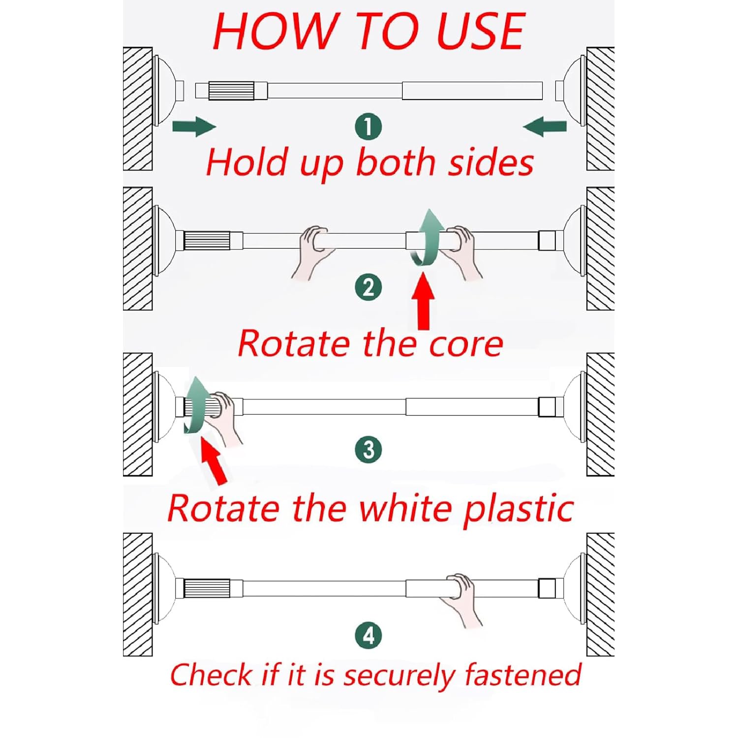 【 Wide Application 】 Spring tension Rods for Windows, Curtains, Bathrooms, Closet, Kitchen, Doorway, Cupboard, Wardrobe. Spring curtain rod Rubber Anti-skid Base is very firm and suitable for Glass, wooden walls, marble, lime wall, and ceramic tile.