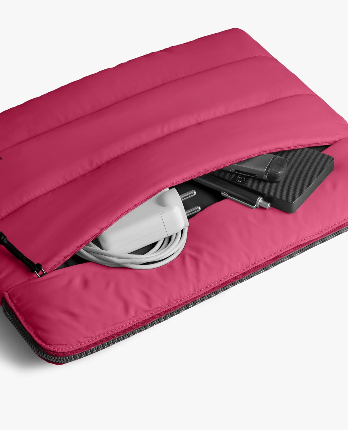 Secured by a zip closure, the sleeve is designed to hold any laptop up to 14 inches.