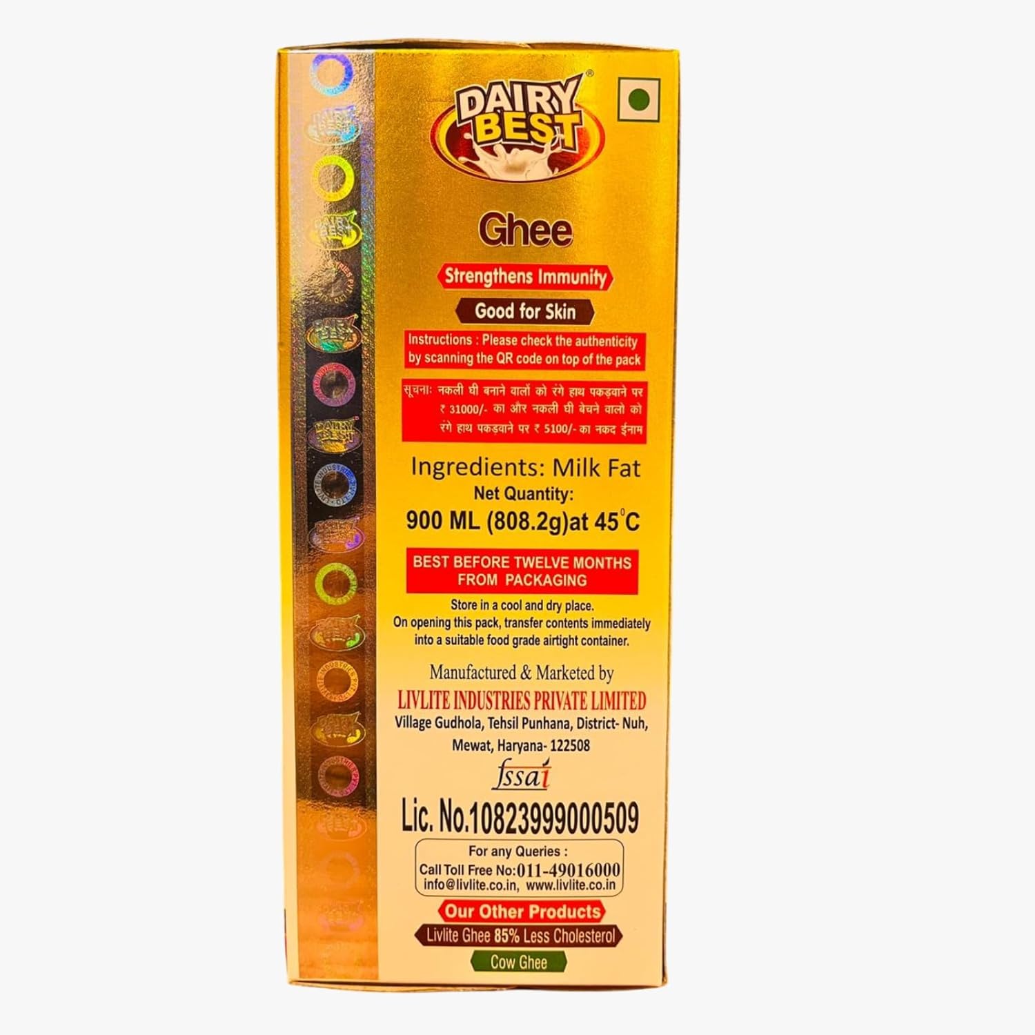 Dairy Best® Desi Ghee 900 ml | Natural, Lactose-Free & Gluten-Free | Fresh, Healthy & Lab Tested | Traditional & Cultured.