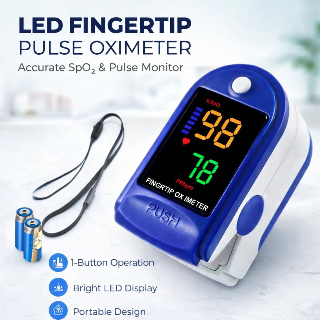Digital LED Pulse Oximeter for Home Use Instant SpO₂ & Pulse Measurement, Fast & Accurate LED Pulse Oximeter, Instant Blood Oxygen & Heart Rate Checker With Batteries and Laynyard AD807
