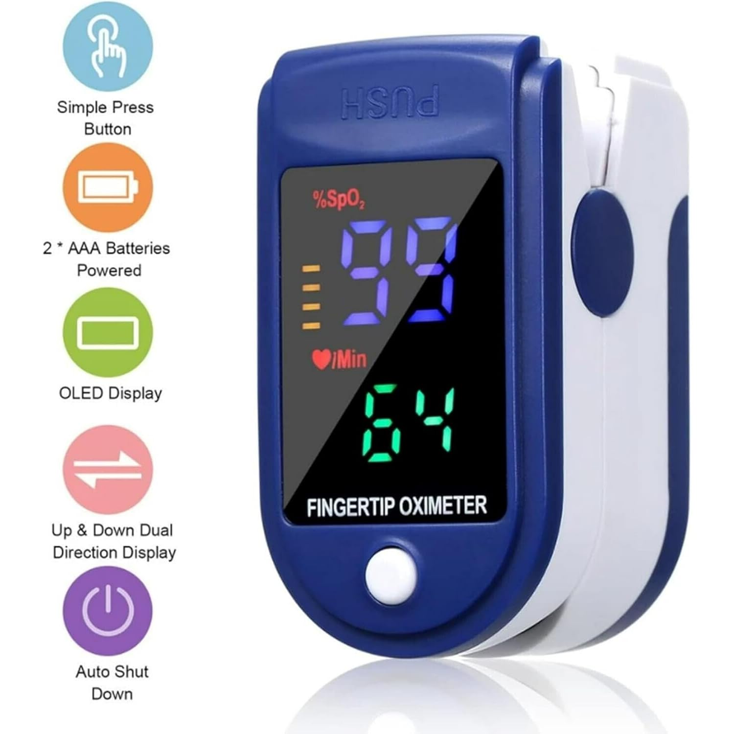 FINGERTIP DESIGN: Compact and lightweight pulse oximeter with simple one-button operation – just clip onto your fingertip and press the button for instant readings