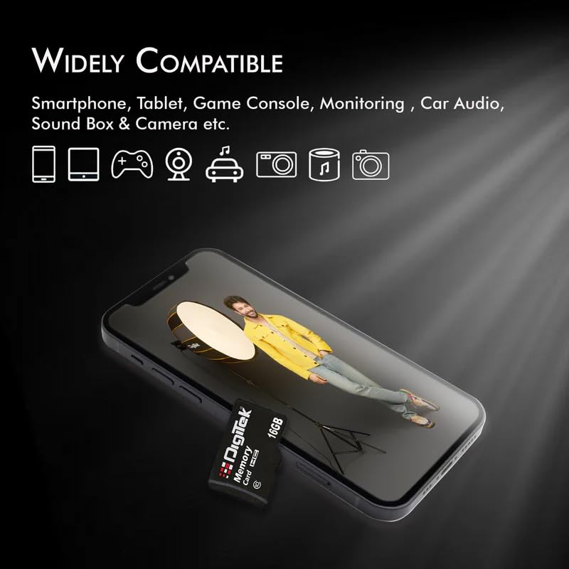 Digitek (DTF 16GB C10) High Speed Micro SDHC 16GB UHS-I Memory Card – A1, Class 10, 100MB/s Speed, Waterproof, Shockproof, X-Ray Safe, Ideal for Smartphones, Cameras, CCTV & More