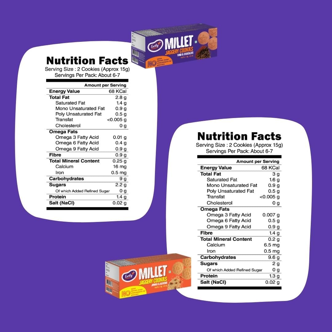 Early Foods Biscuits Combo Pack Of 2-Jowar & Ragi Choco Jaggery Assorted Cookies |Sugar Free Biscuits-Jowar & Ragi Choco, 260 gram