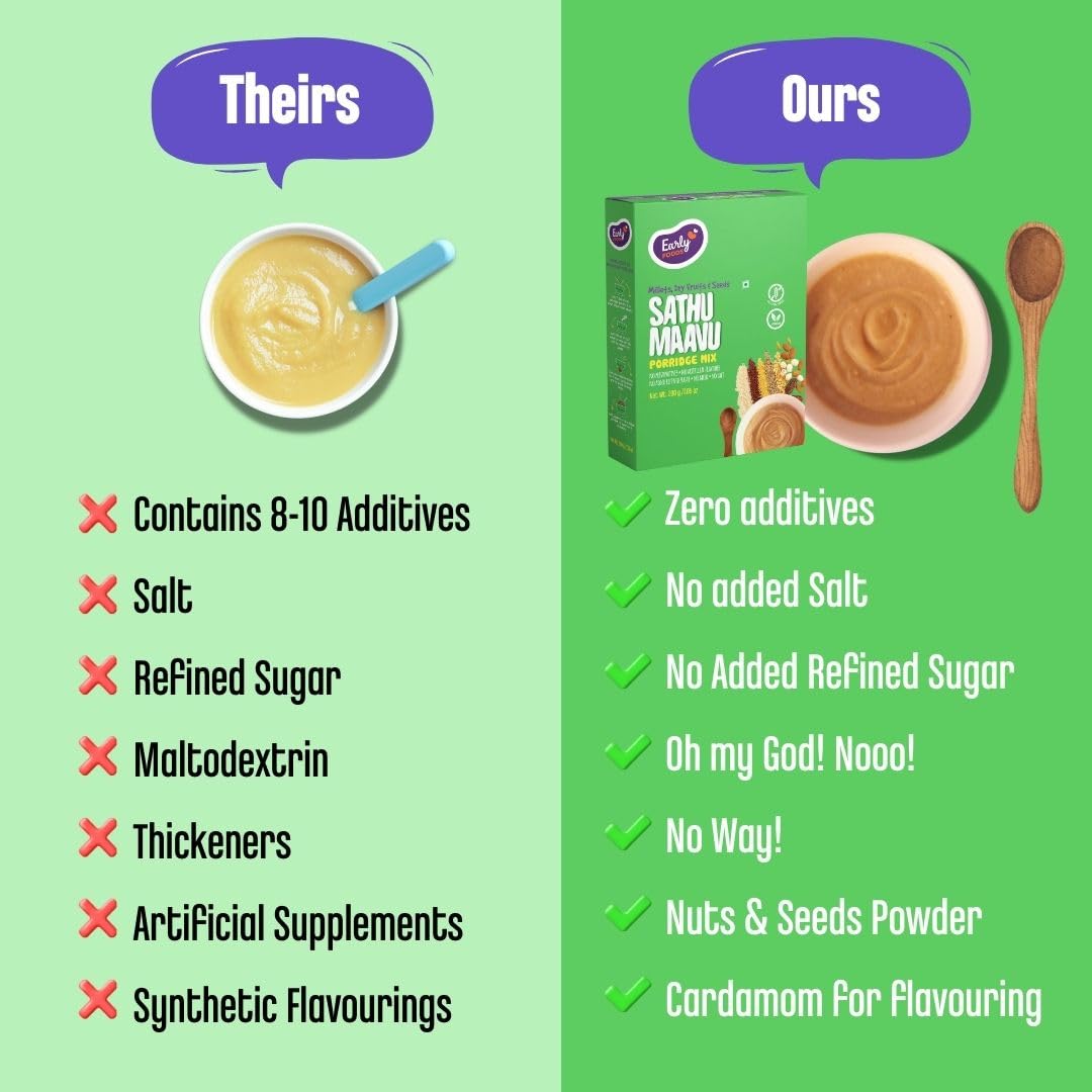Early Foods – Pack of 2 : Sprouted Ragi Almond Date & Sathu Maavu Porridge Mixes |Breakfast Cereals |Ragi malt | Munch Cereal | Gluten Free Porridges 200 gms x 2