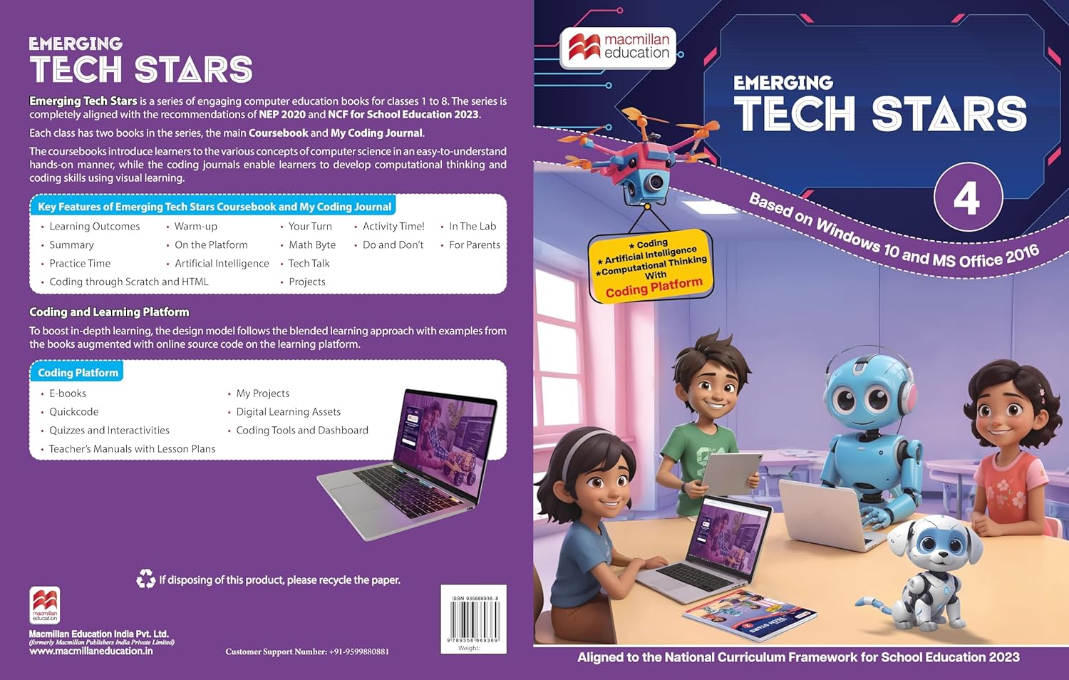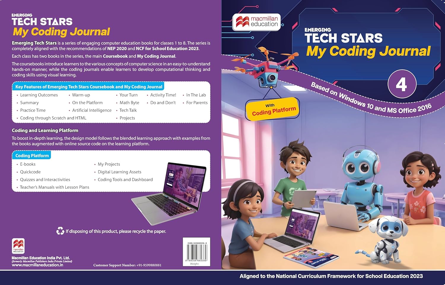 Emerging Tech Stars is an NEP 2020 and NCF 2023-aligned computer science series for Classes 1–8, designed to transform students from digital users into digital creators through blended, experiential learning. Based on Windows 10 and MS Office 2016, this two-book-per-grade series includes a Coursebook and My Coding Journal, making it a complete solution for foundational and intermediate computer education.