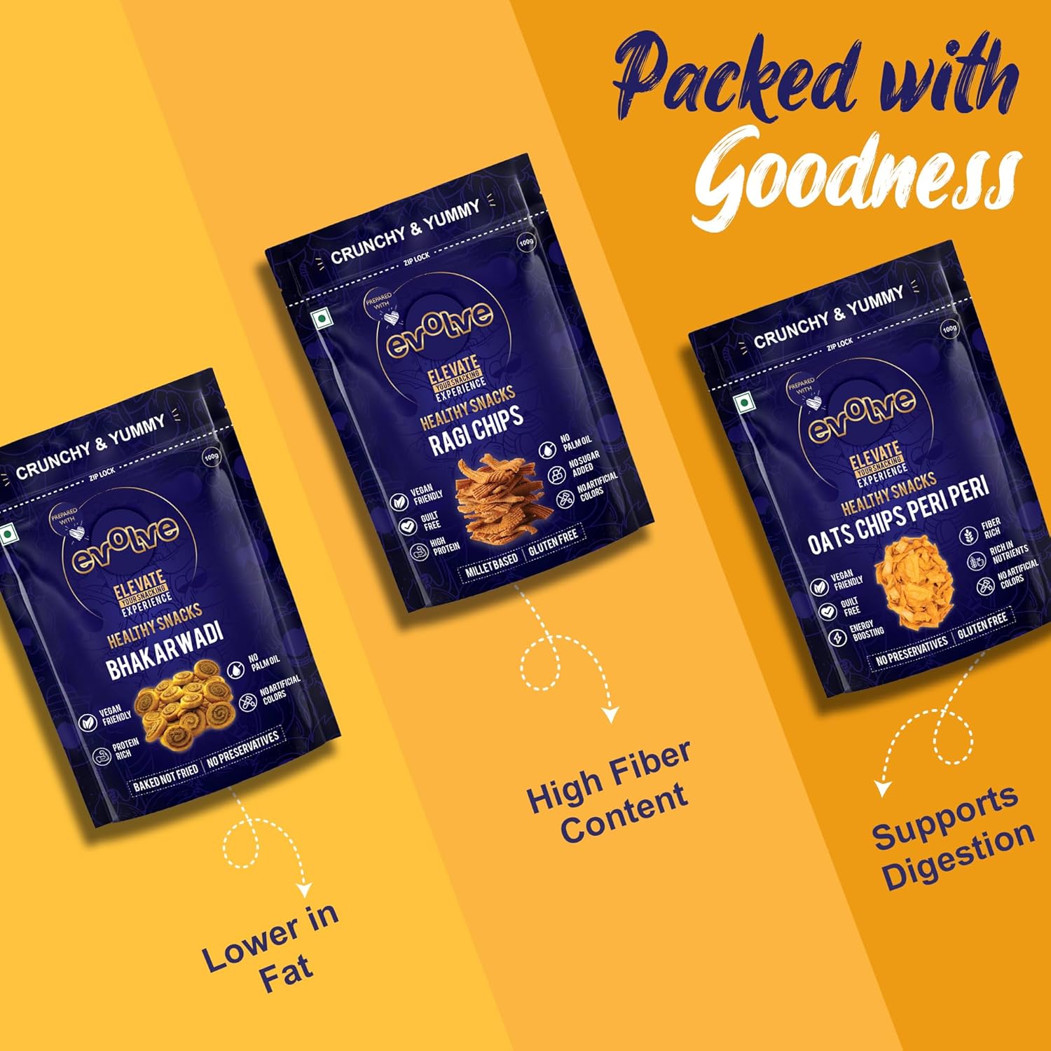 Evolve Combo Healthy Snacks for Kids, Adults | Baked Bhakarwadi, Ragi and Oats Chips | Vacuum Fried, Vegan, No Artificial Colors & Preservatives – Pack of 3 (100g Each)