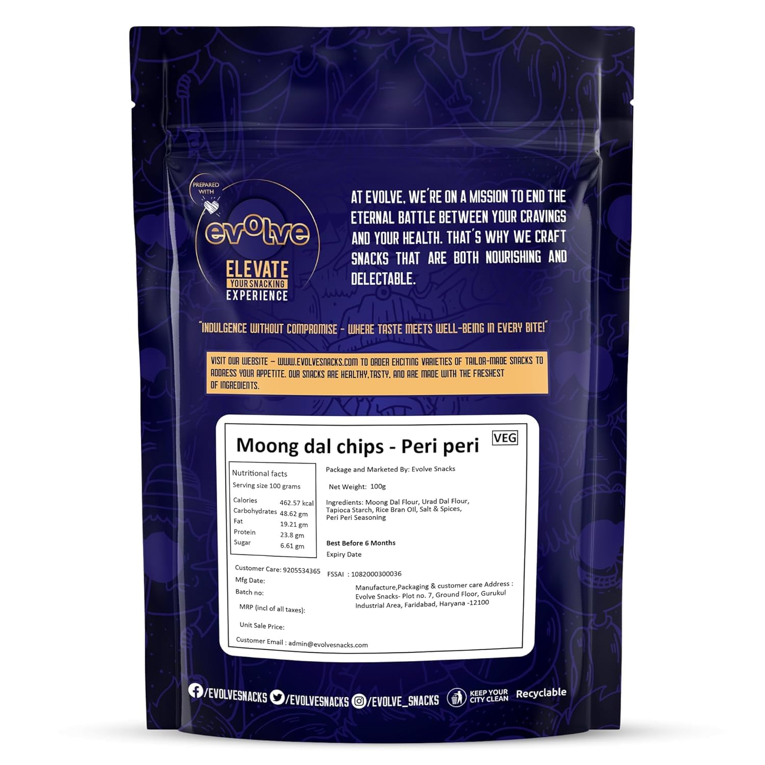 Evolve Moong Dal Chips Healthy Snacks | Roasted, Gluten Free Snacks, No Palm Oil & Artifical colors, Moong Dal Snack, Peri Peri Flavor – 100gm Pack of 2