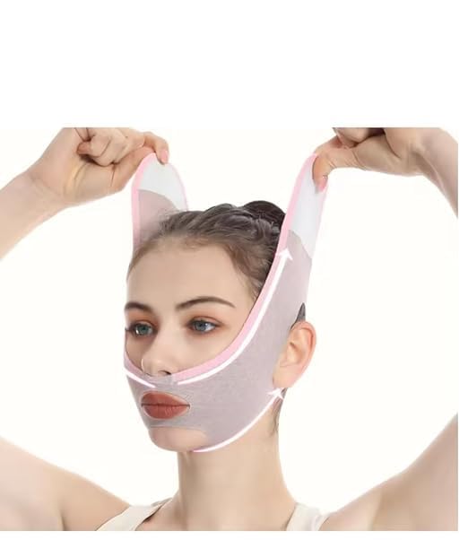 Facial Slimming Belt, Double Chin Reducer Reusable V-Shape Face Mask for Men & Women Facial Shaped UP Lift Belt, Slim Cheeks Lifting Jaw Line Shaper Anti Wrinkle Strap Elastic Face (1 Pcs)(MULTICOLOR)
