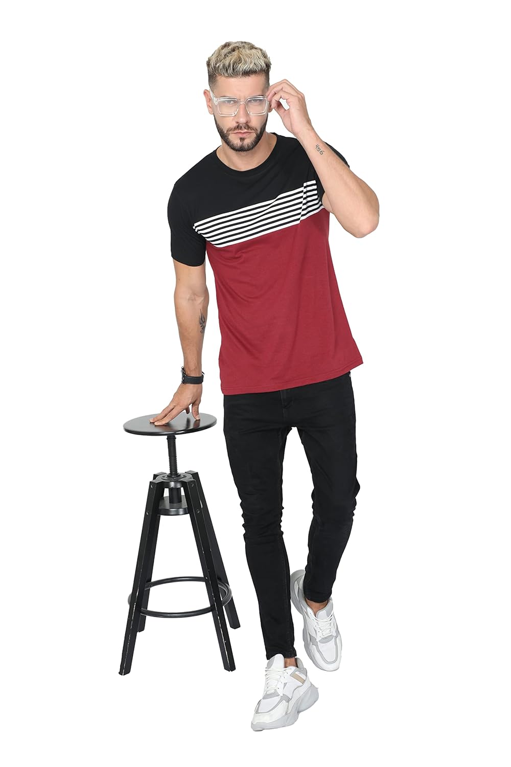 fanideaz Mens Cotton Half Sleeve Striped Round Neck T Shirt