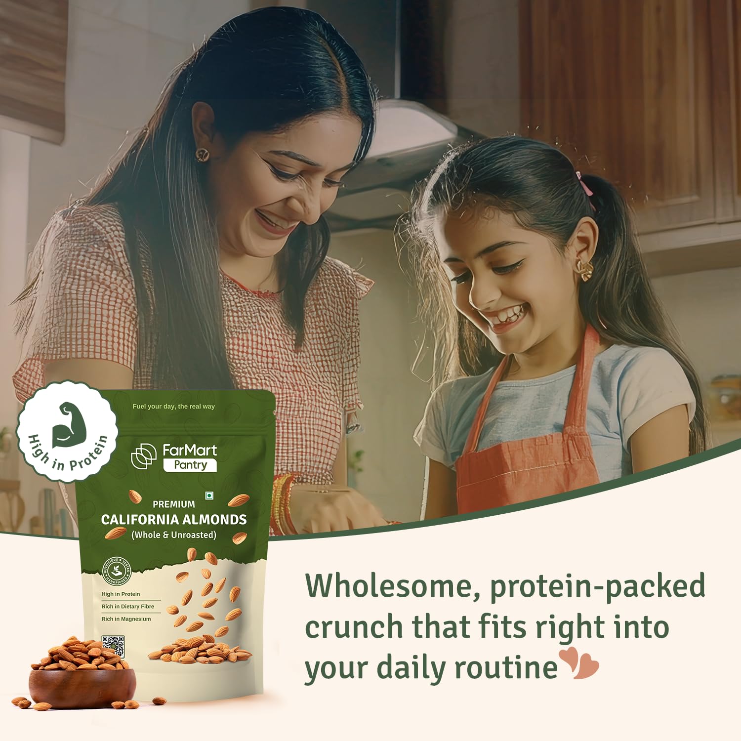 FarMart Pantry Premium California Almonds (Whole & Unroasted)| 500g Pack | Handpicked, High in Protein, Rich in Fibre & Magnesium | 100% Natural & Crunchy Dry Fruits |