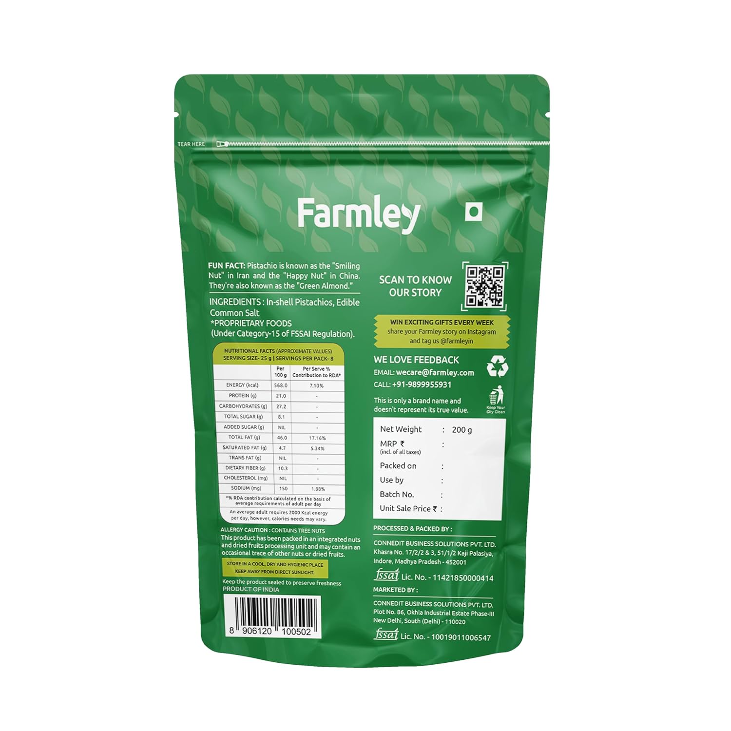 Farmley Premium California Roasted Salted Pistachios | 200 g | Pista, Dry Fruits, Pistachios, Nutritious & Crunchier Pista Nuts, Tasty & Healthy Snacks (Pack of 1)