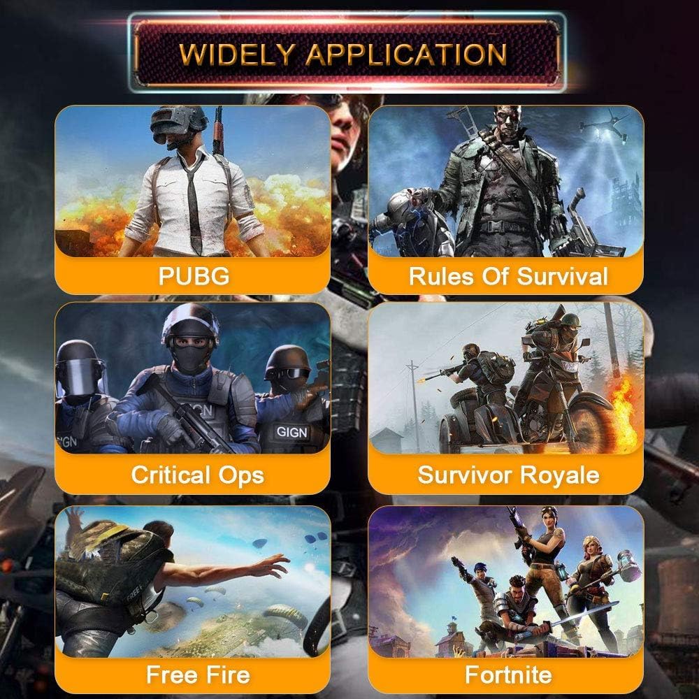 Compatible Devices: Pubg Mobile Controller Fortnite and PUBG High-sensitivity mobile game controller does not need power and driver, suitable for most Android and iOS devices and perfect for shooting games such as PUBG, Rules of Survival, Knives Out, Survivor Royale, etc.