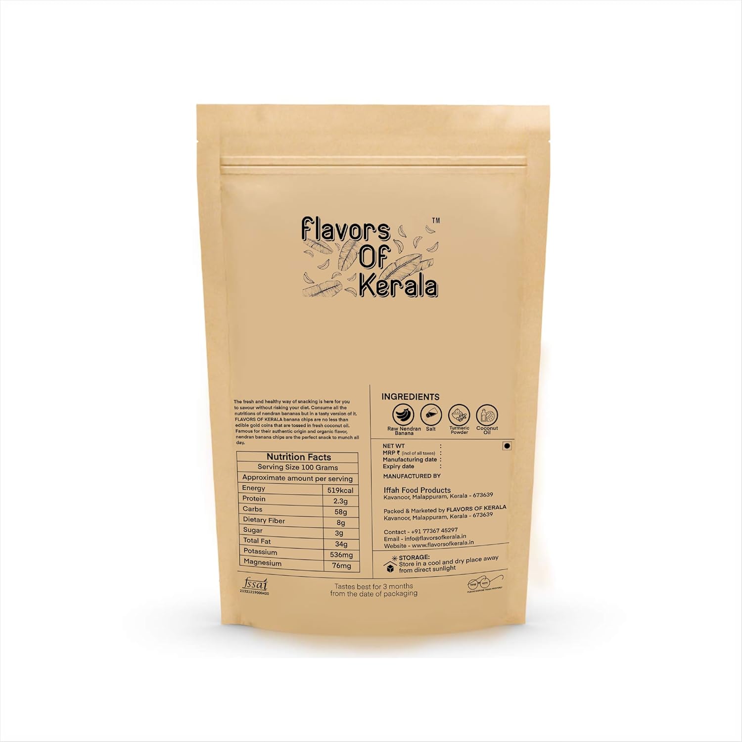 𝐏𝐮𝐫𝐞 & 𝐇𝐨𝐧𝐞𝐬𝐭 𝐈𝐧𝐠𝐫𝐞𝐝𝐢𝐞𝐧𝐭𝐬: Just four simple, natural elements – Nendran banana, pure coconut oil, turmeric, and salt. Absolutely no palm oil, preservatives, or artificial additives.
