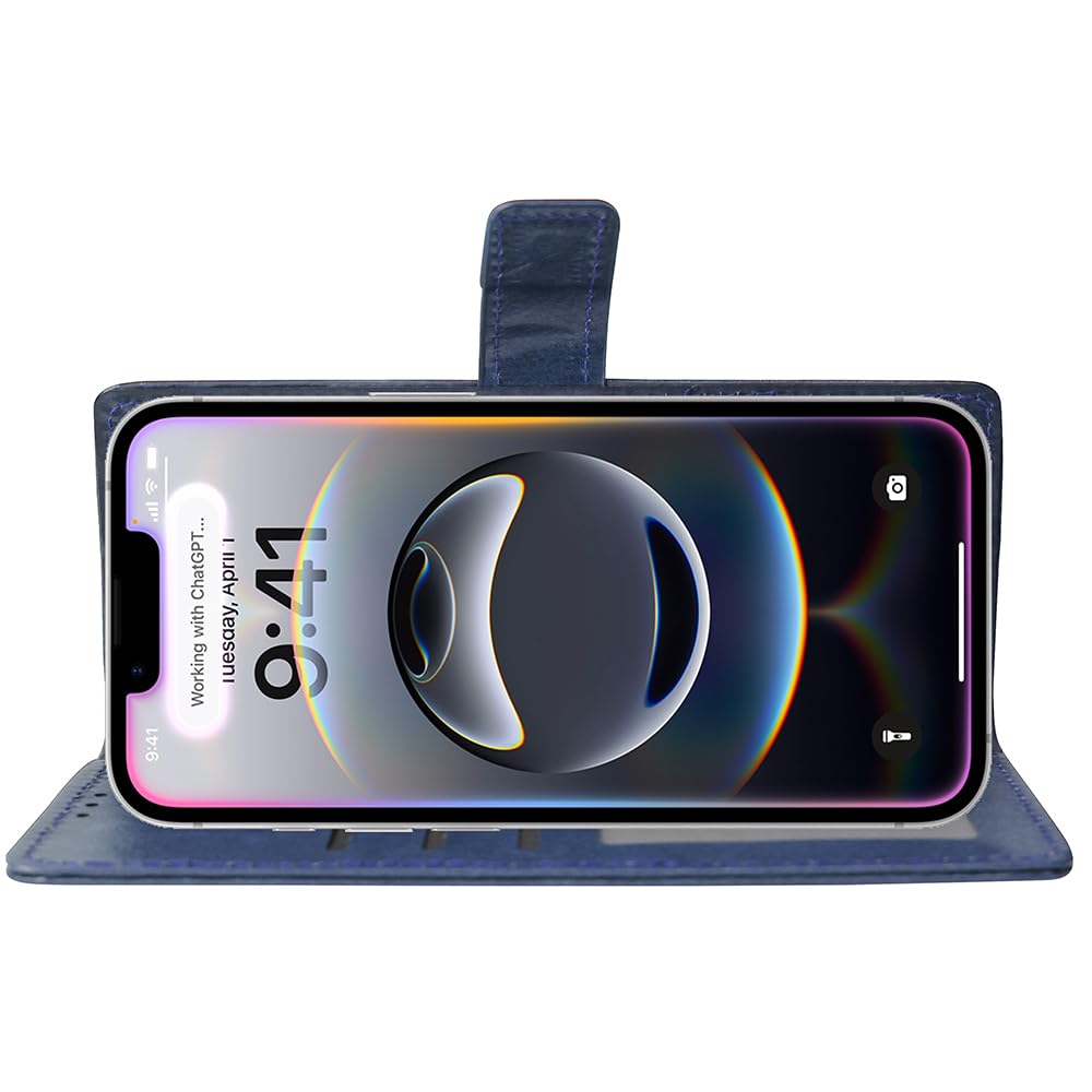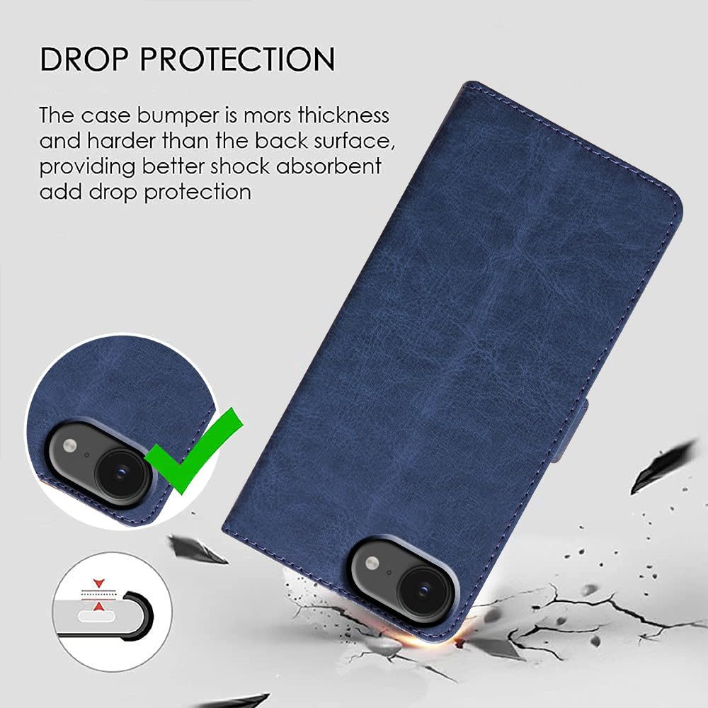 Flip Cover Back Case for Apple iPhone 16e | Premium Leather Finish | Inbuilt Pockets & Stand | Flip Cover Back Case for Apple iPhone 16e (Blue)