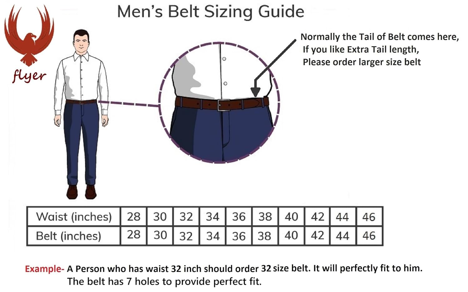 Flyer Men’s Leather belt (Formal/Casual) (Colour -Brown/Black) Buckle Adjustable Size Genuine Leather (B908) (Pack of 1)