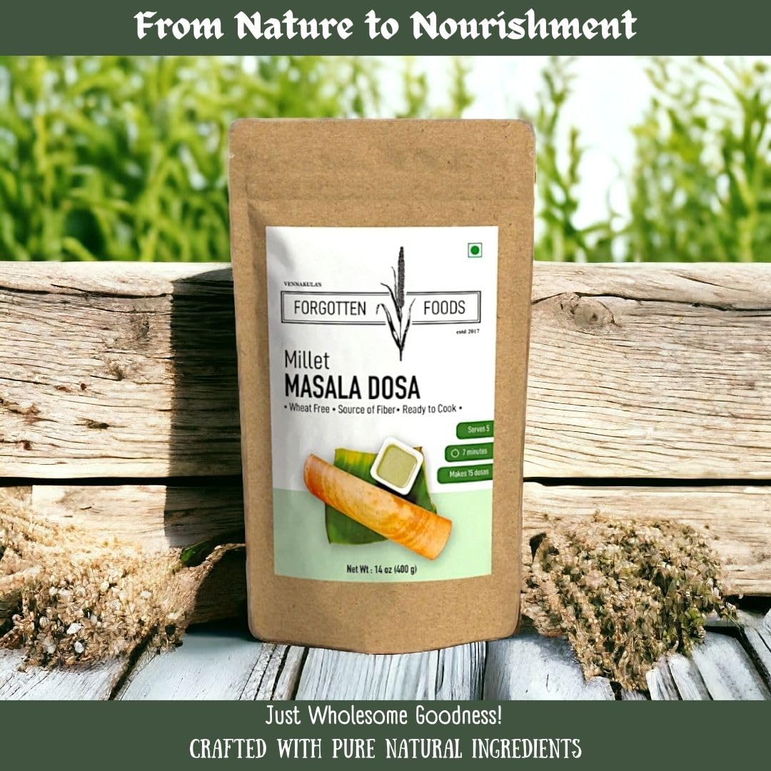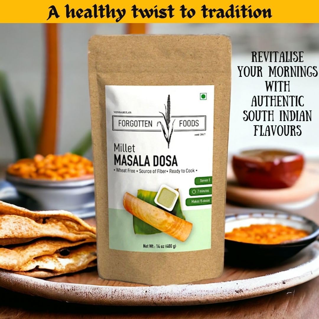 Forgotten Foods Millet Masala Dosa 400g – Wheat Free Instant Dosa Mix with Multi Millets – High Fiber, Plant Proteins, Low GI, No Soda, No Preservatives – Makes 15 Dosas, Serves 5