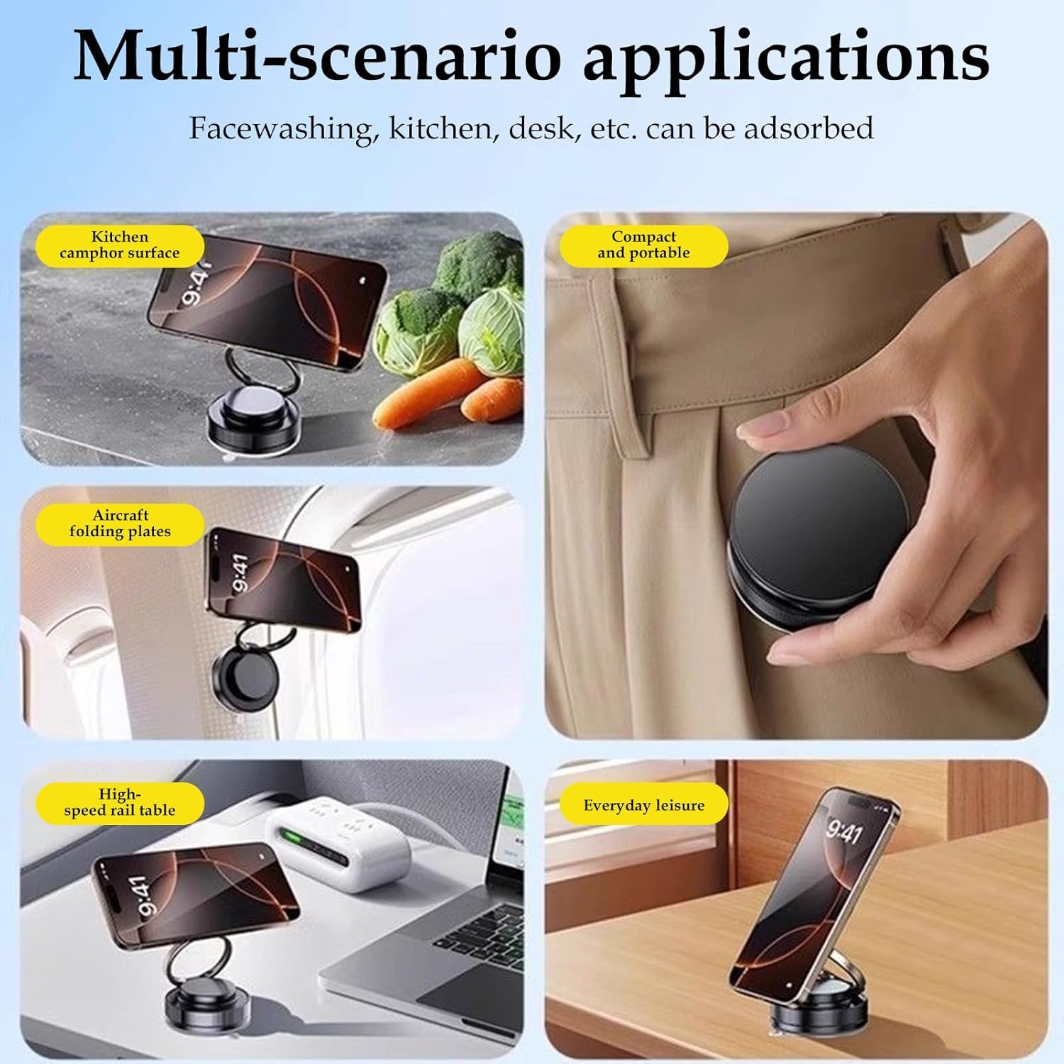 💪 MULTIFUNCTIONAL VACUUM SUCTION – Foldable vacuum suction cup sticks firmly on glass, tiles, metal & smooth surfaces. Perfect for hands-free video calls, cooking tutorials, workouts, or navigation without slipping or falling. 🧼🚿🏋️♂️