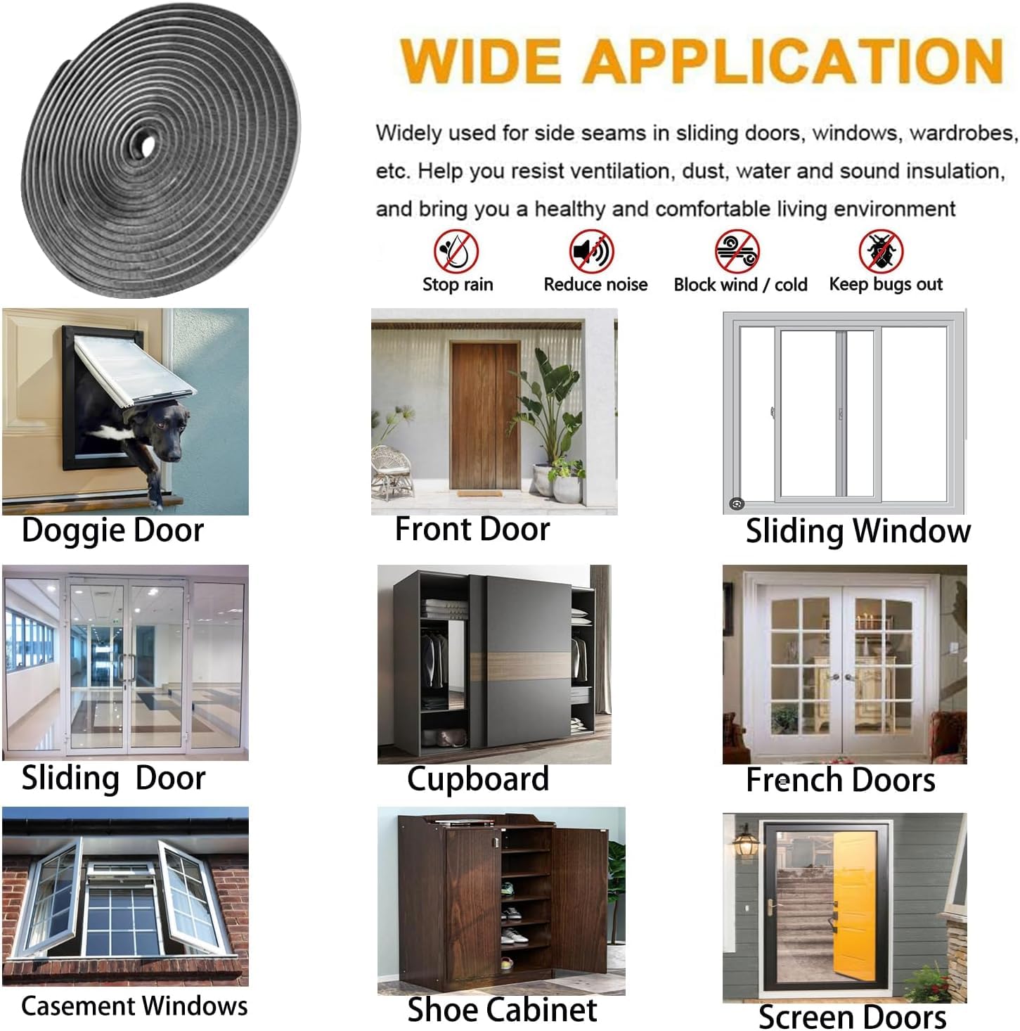 Popular home and office weatherproofing products, can use on sliding door, windows, french door etc.For example, use to kitchen sliding door to block lampblack, keep your living room clean.