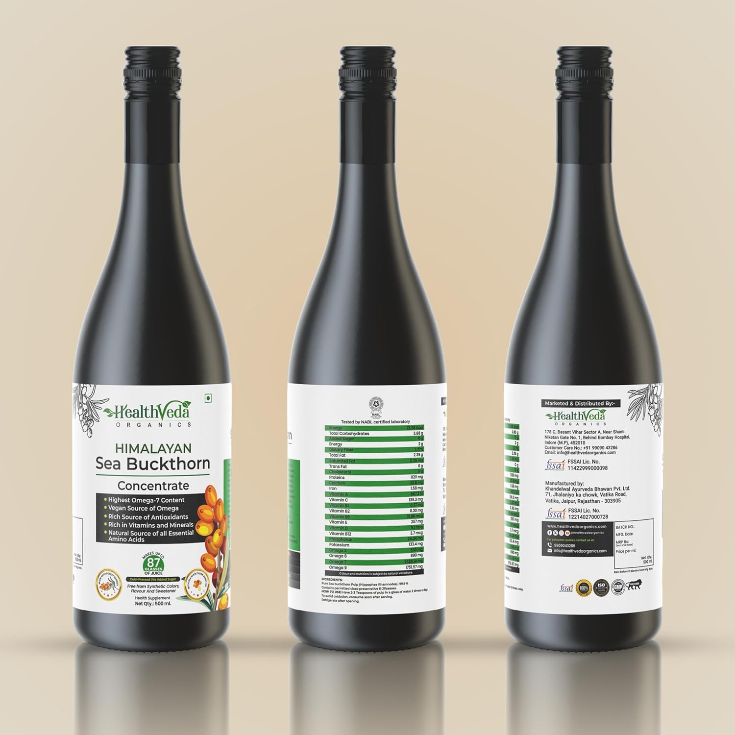 🔹 WILD-HARVESTED FROM THE HIMALAYAS – Sourced from naturally growing Sea Buckthorn berries in the high-altitude valleys of Nubra, Ladakh. Each berry is handpicked and cold-pressed to preserve its purity, potency, and natural nutrition — bottled fresh in 500ml for unmatched quality.
