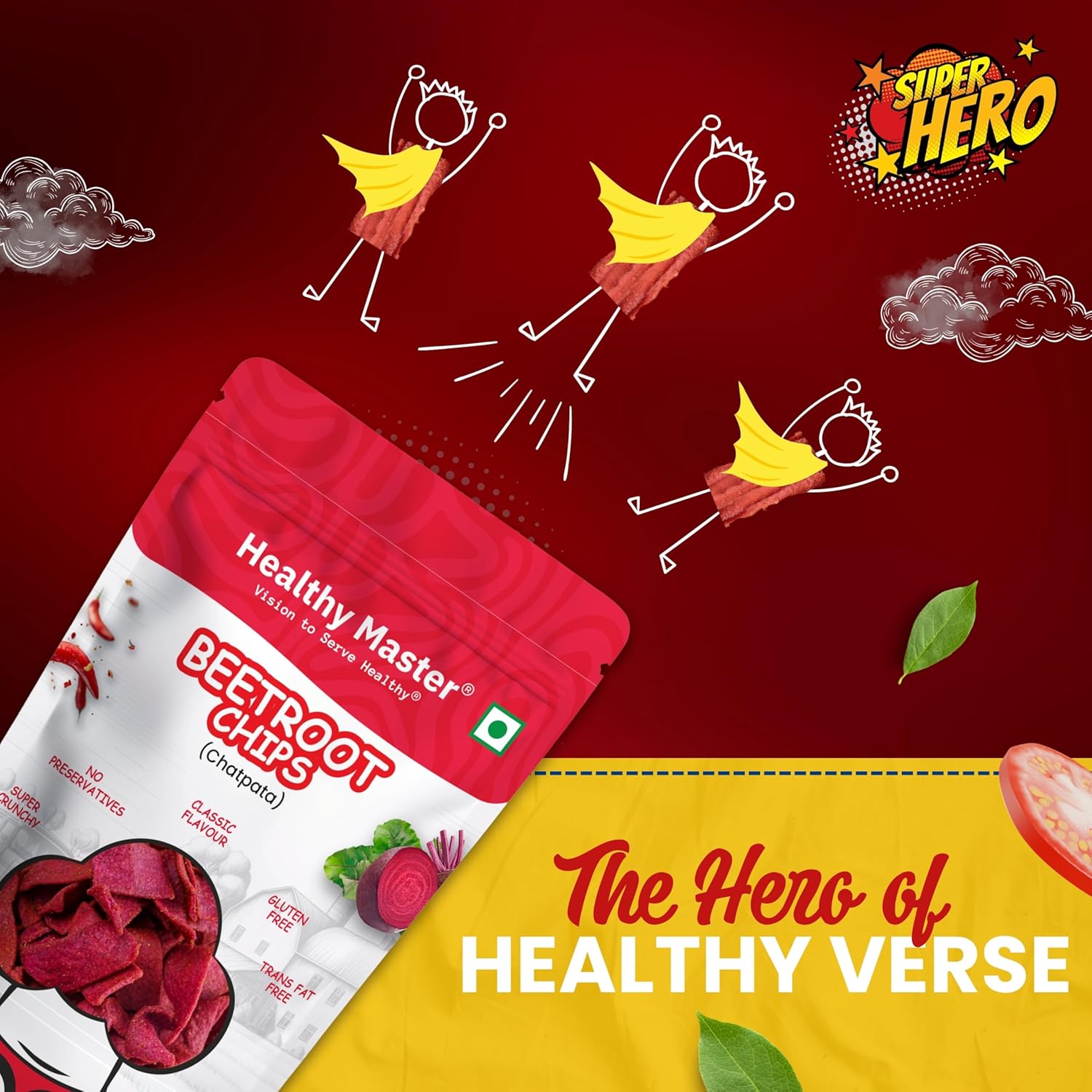 NATURE’S COLORFUL CRUNCH: Healthy Master’s Beetroot Chips are here to add natural color and crunch to your day. Packed in a convenient chips pack, these crispy vegetable chips are made from fresh beetroot, roasted to perfection. Whether it’s office hunger pangs, post-workout cravings, or evening binging, this nutrient-packed snack delivers both taste and wellness with every colorful bite!