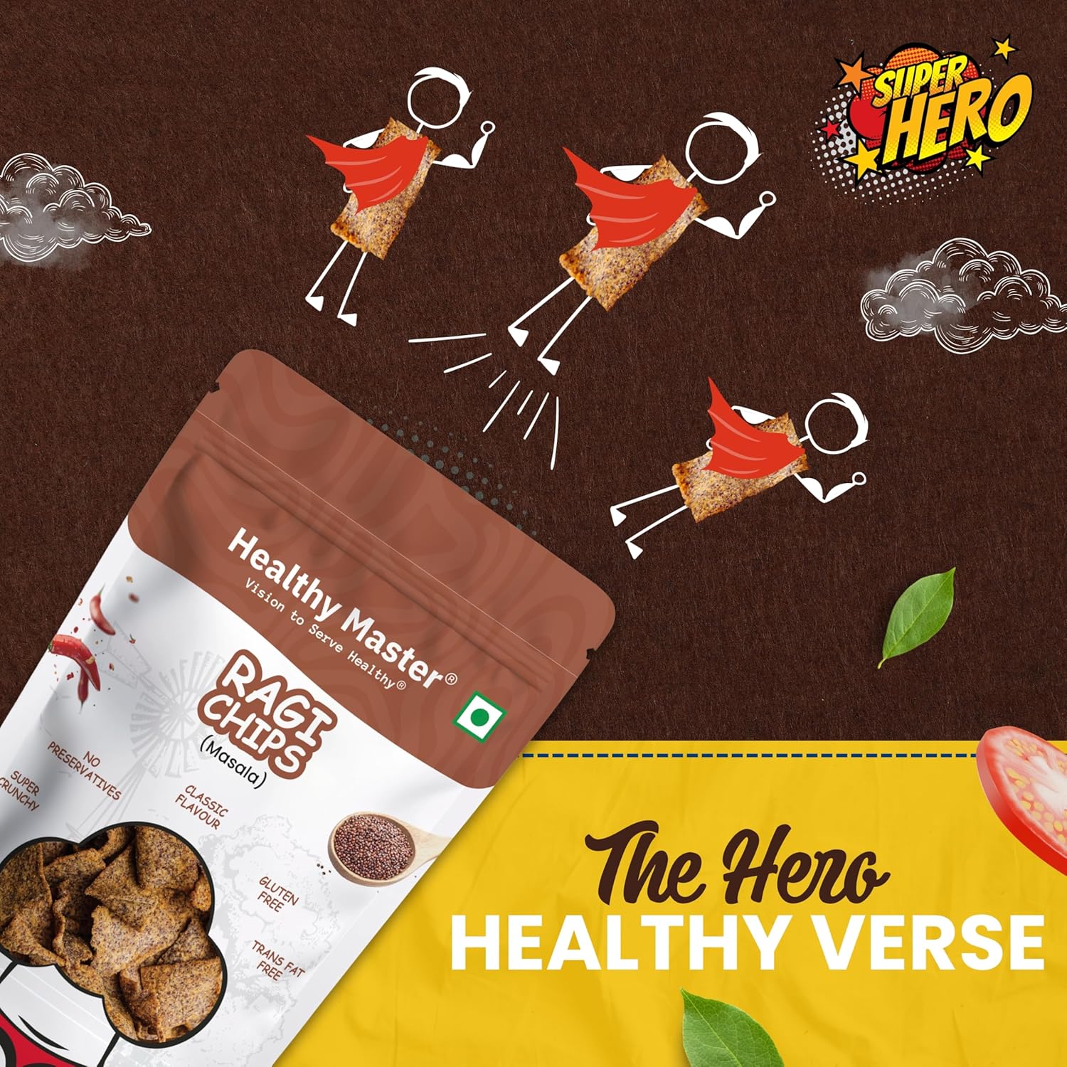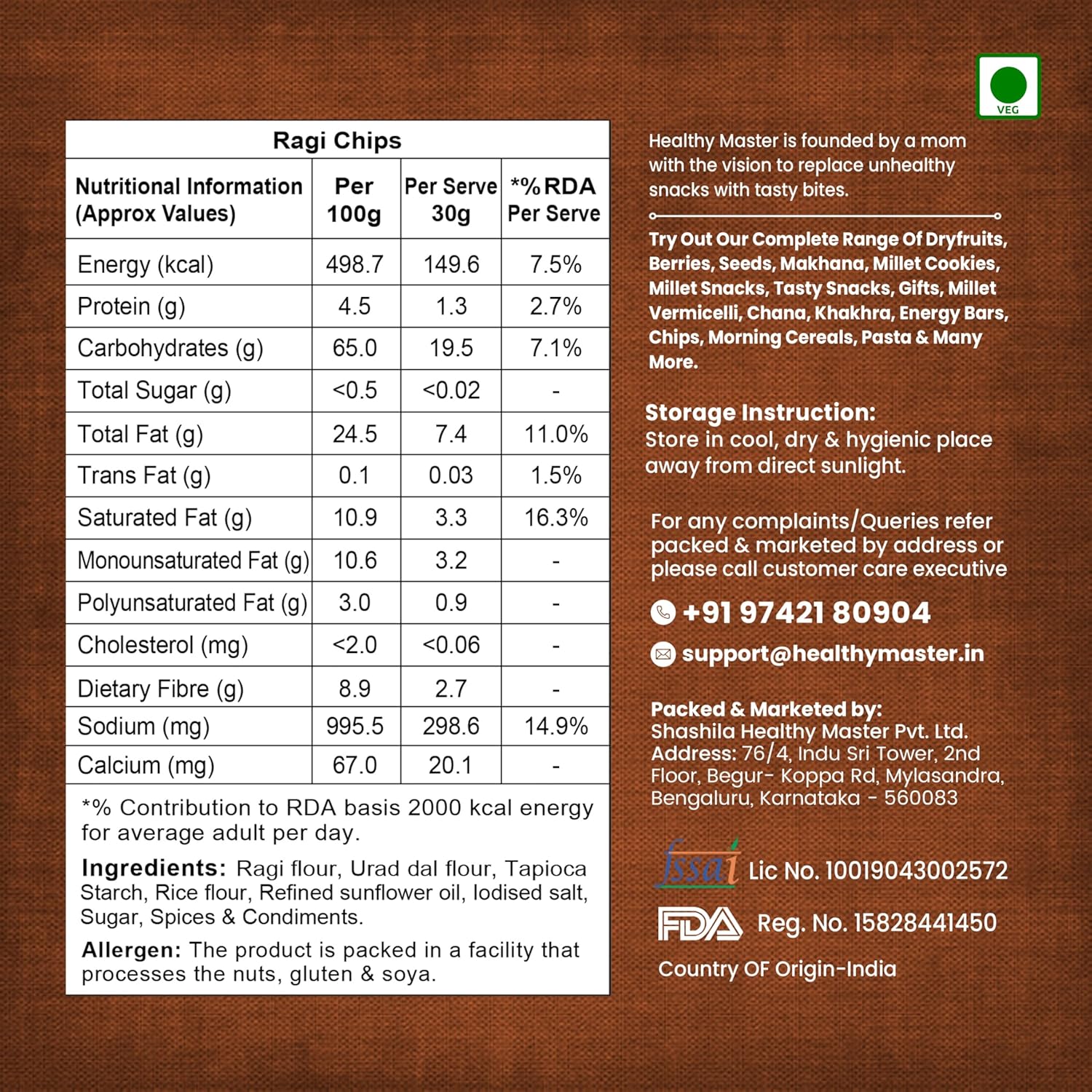 CRUNCHY RAGI GOODNESS: Snack time just got smarter! Healthy Master’s Ragi Chips are here to transform the way you munch. Packed in a convenient chips pack, these crispy delights are made from wholesome ragi, roasted to perfection. Whether it’s office hunger pangs, post-school cravings, or midnight binging — this power-packed snack delivers both taste and nutrition with every bite!