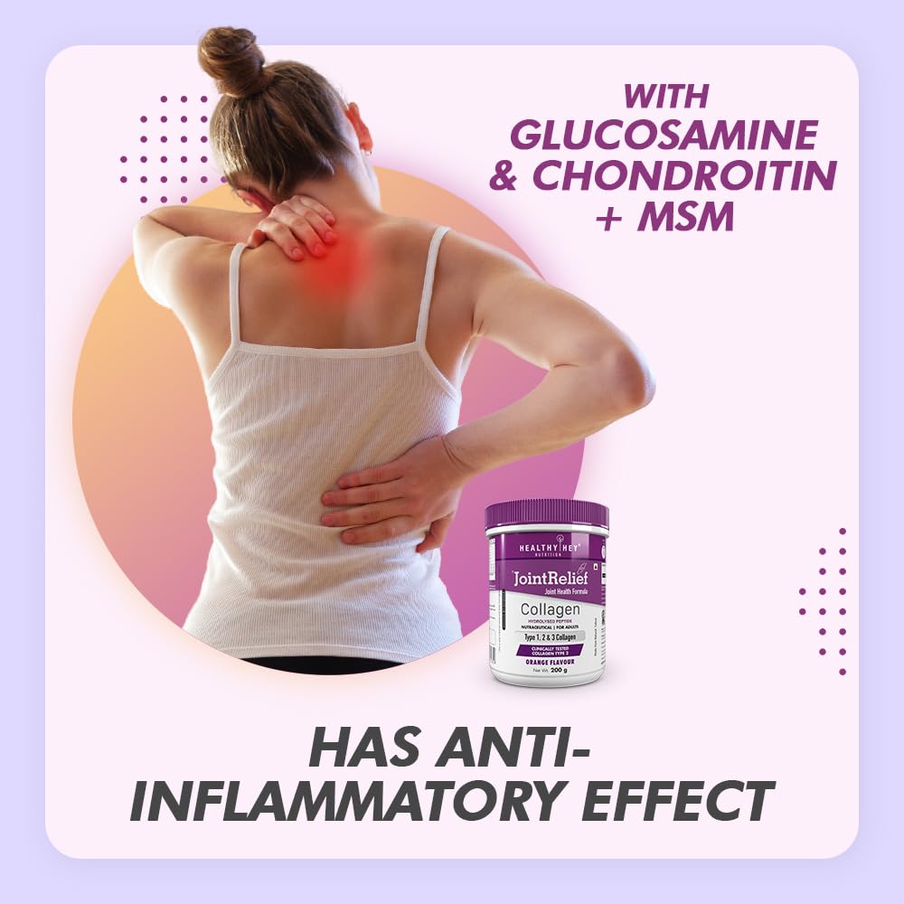HealthyHey Nutrition Jointrelief Collagen Peptide Powder Type 1,2 & 3 (Hydrolysed) With Glucosamine,Chondroitin,Msm- Support Joint And Cartilage Health – 200 G (Orange),1 Count,22 Servings