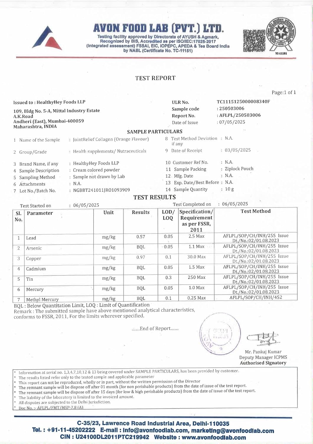 Manufacturer : HEALTHYHEY FOODS LLP