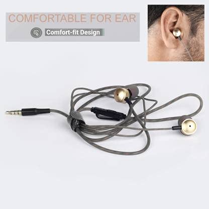 Hitage Earphones MH-76 Headphones Earplugs Headset High Definition Sound Deep Extra Bass Wired Earphone with in-line Mic Wide Compatibility Tangle Free Cable (Gold)