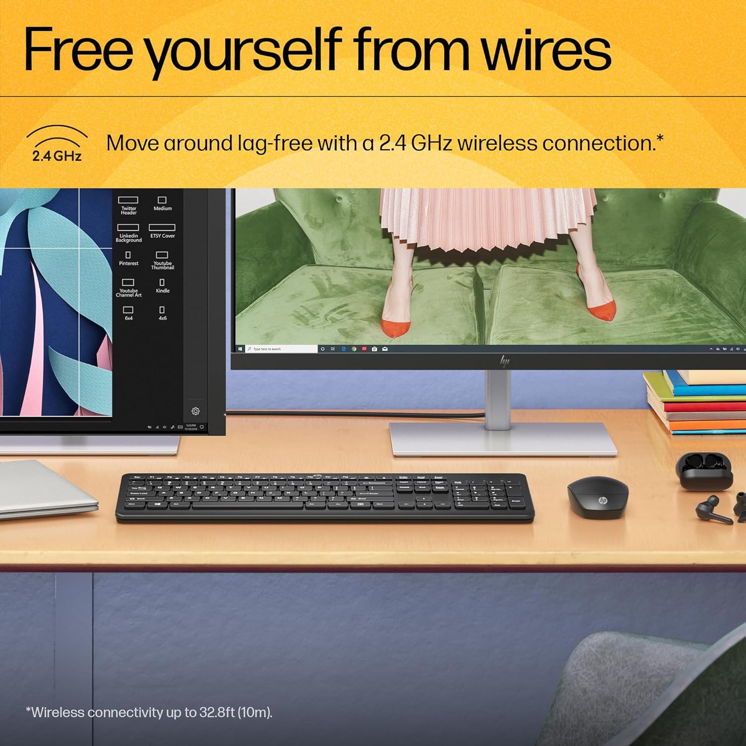 HP 230 Black Chicklet Wireless USB Keyboard and Mouse Set with 2.4GHz Wireless Connection and 12 Function Keys/ 16 Months Battery Life/ 1600 dpi/Black (18H24AA)