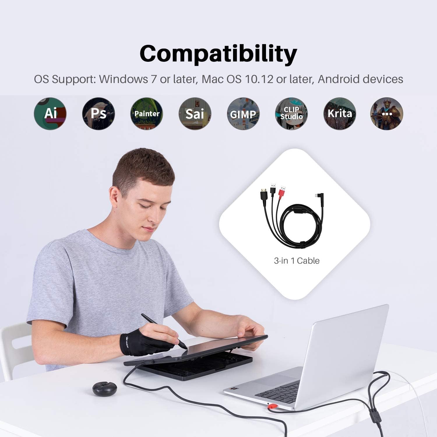 Kamvas 13 supports Mac(MacOS 10.12 or later) and Windows computer(Windows 7 or later), you can also connect it to your android smartphones (USB 3.1 GEN1) and tablets with the full-featured Type-C cable. First you have to download the driver and then plug in the device and start using it
