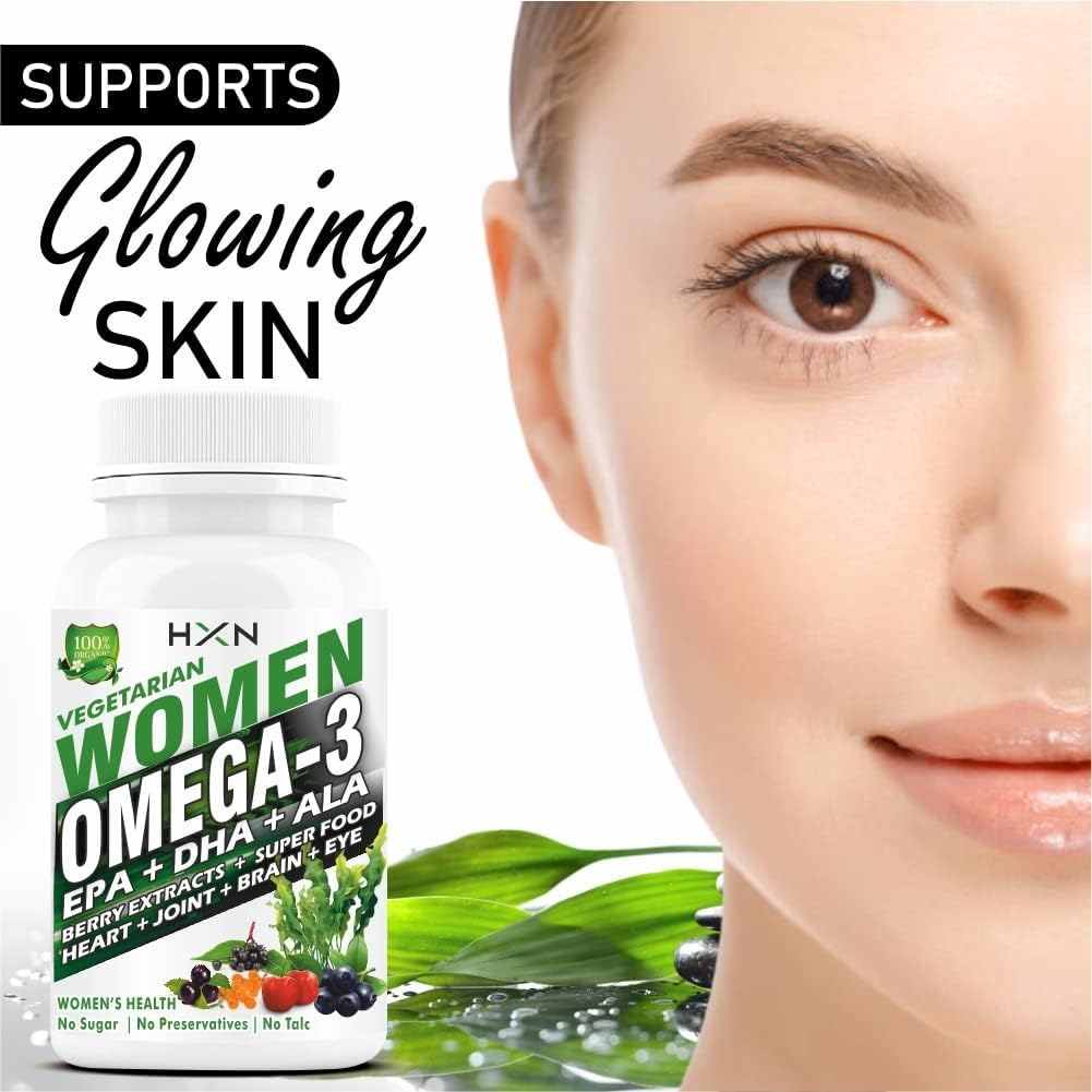 HXN Omega 3 Supplement Vegetarian Capsules High Strength EPA DHA Supplement For Women Fish-Oil Alternative Omega3 Fatty-Acid, Veg Source, 98% Pure Omega -60